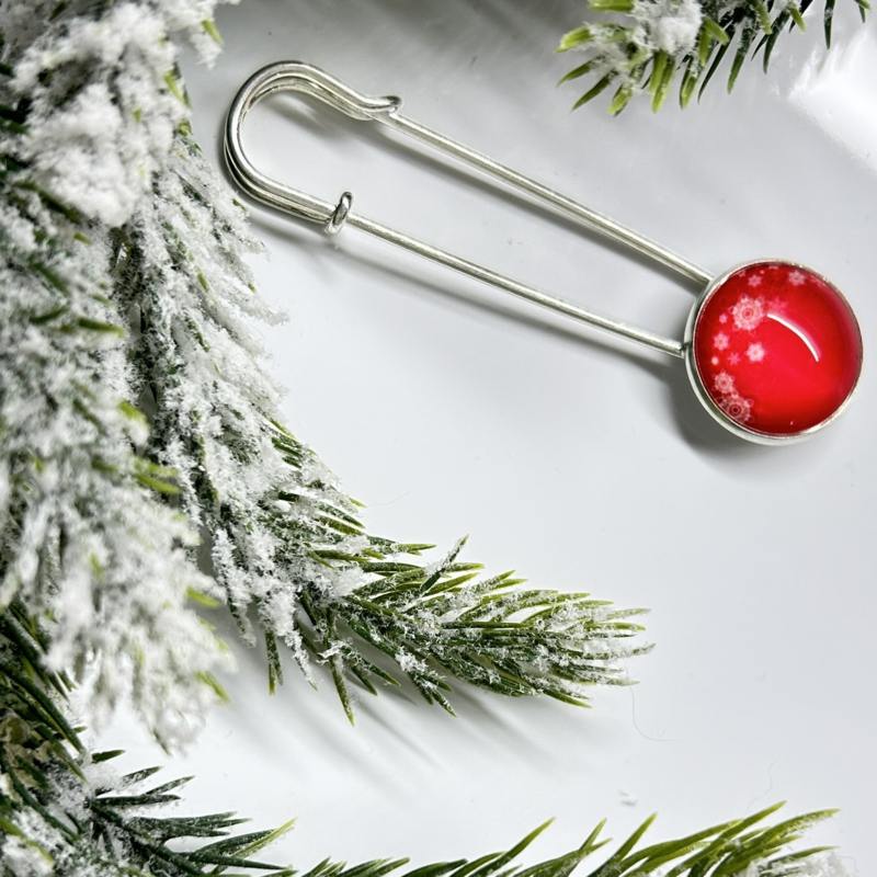 In de setting van deze speld vind je kerst in de traditionele sfeer. De cabochon is mooi groot waardoor de speld zeker zal opvallen.
