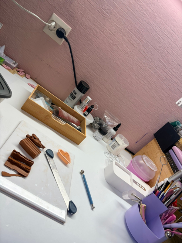Begin 2022 sprong de vonk over en begon ik met het ontwerpen van sieraden van polymeerklei. Het mooiste aan dit materiaal is de absolute vrijheid: ik kan eindeloos kleuren mengen, unieke vormen creëren en details toevoegen die je in de massa-industrie niet snel tegenkomt. Elk sieraad dat mijn atelier verlaat, is door mij persoonlijk met liefde en precisie gemaakt.