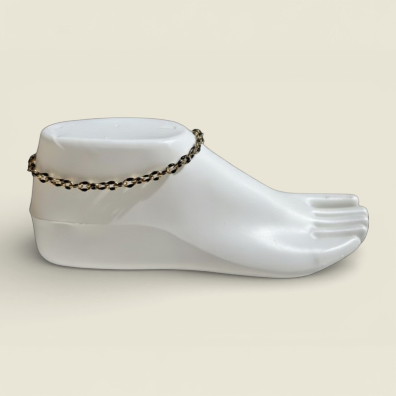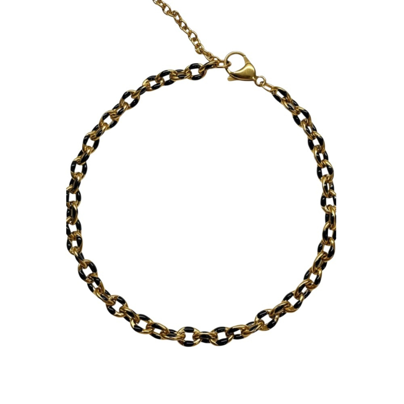 Artikelnummer: 8721271703392 OverzichtElegantie ontmoet duurzaamheid. Het Noir enkelbandje is een tijdloze klassieker die overal bij past. De diepzwarte details in de gouden schakels geven een chic contrast dat zowel bij een casual jeans als een chique zomerjurk prachtig staat. Omdat het van stainless steel is gemaakt, hoef je je geen zorgen te maken over verkleuring; dit bandje is gemaakt om te schitteren.
